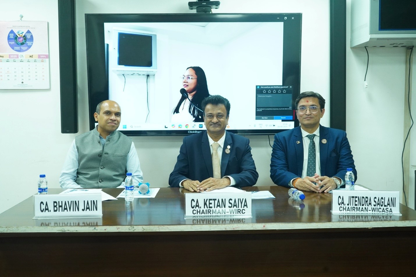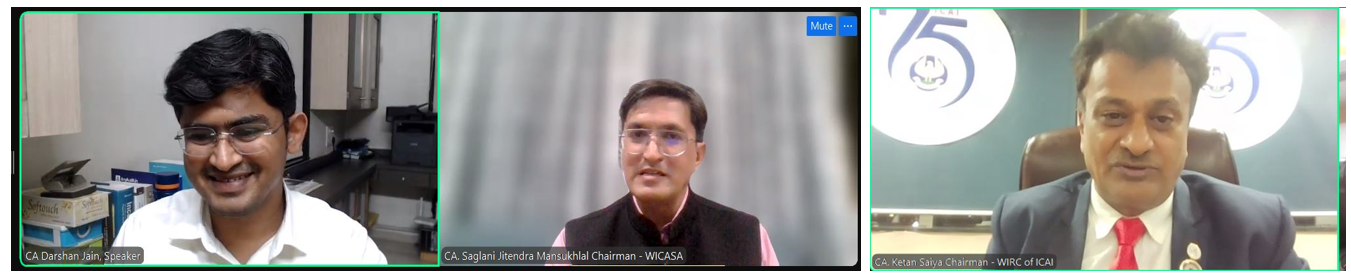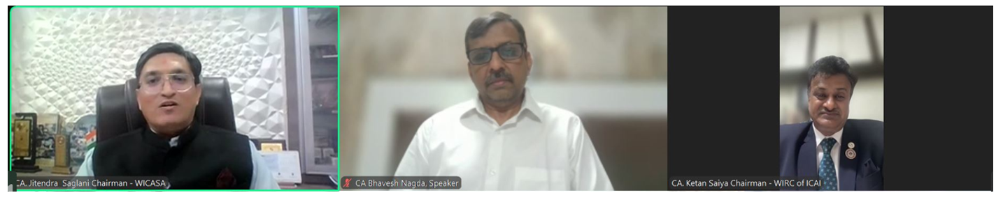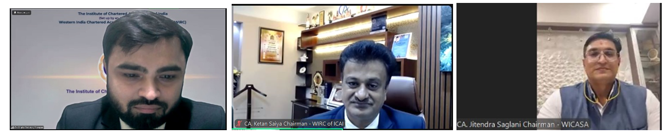 Left to Right: CA. Bhavin Jain, Speaker, CA. Ketan Saiya, Chairman, WIRC, CA. Jitendra Saglani, Chairman, WICASA.
