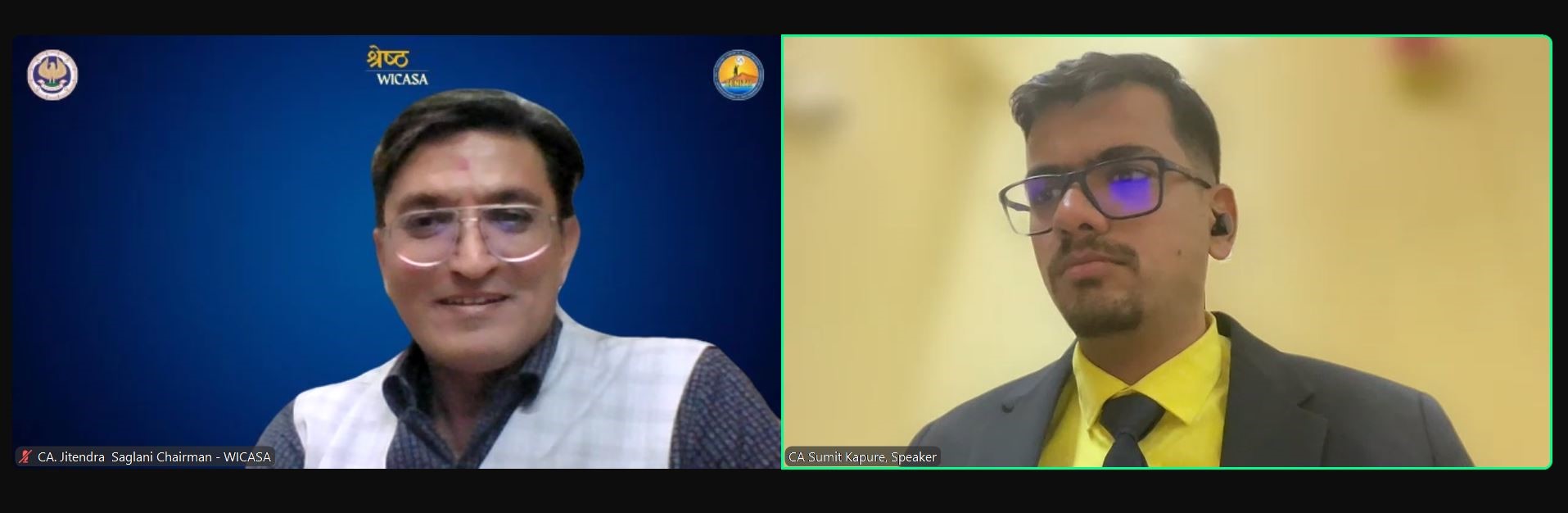 Left to Right: CA. Jitendra Saglani, Chairman, WICASA, CA. Kedar Pande, Speaker.