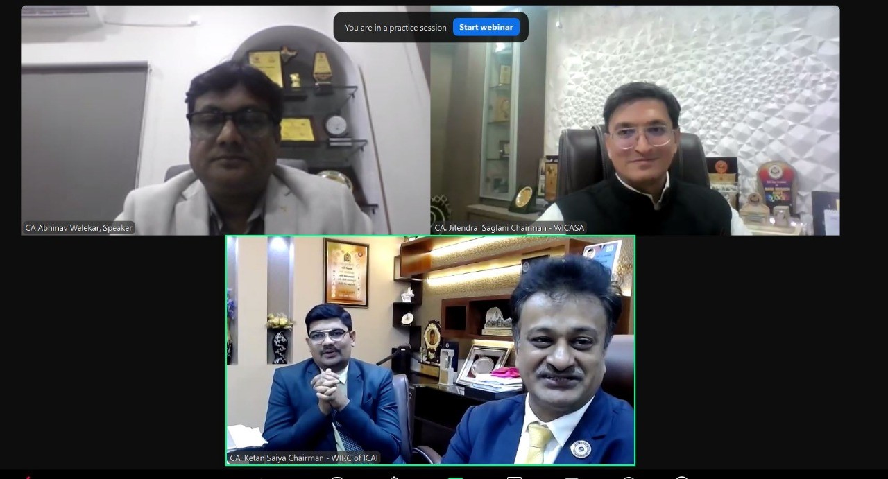 Left to Right: CA. Pratik Sadrani, Speaker, CA. Ketan Saiya, Chairman, WIRC, CA. Jitendra Saglani, Chairman, WICASA.