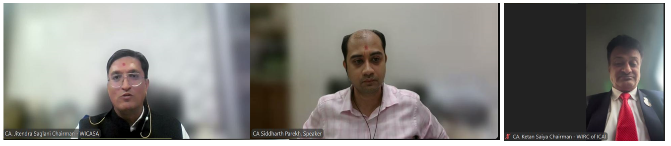 Left to Right: CA. Jitendra Saglani, Chairman, WICASA,CA. Siddharth Parekh, Speaker, CA. Ketan Saiya, Chairman, WIRC.