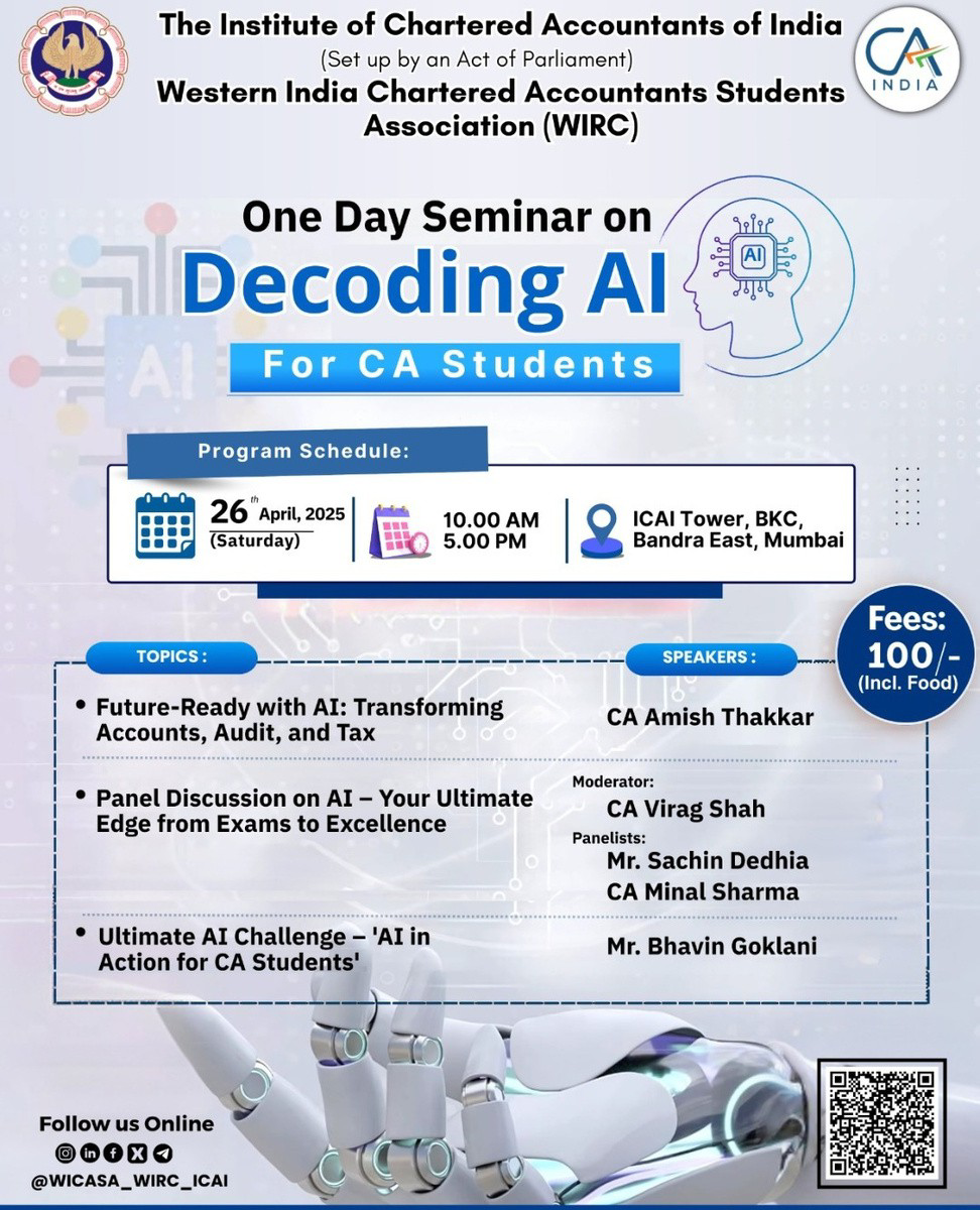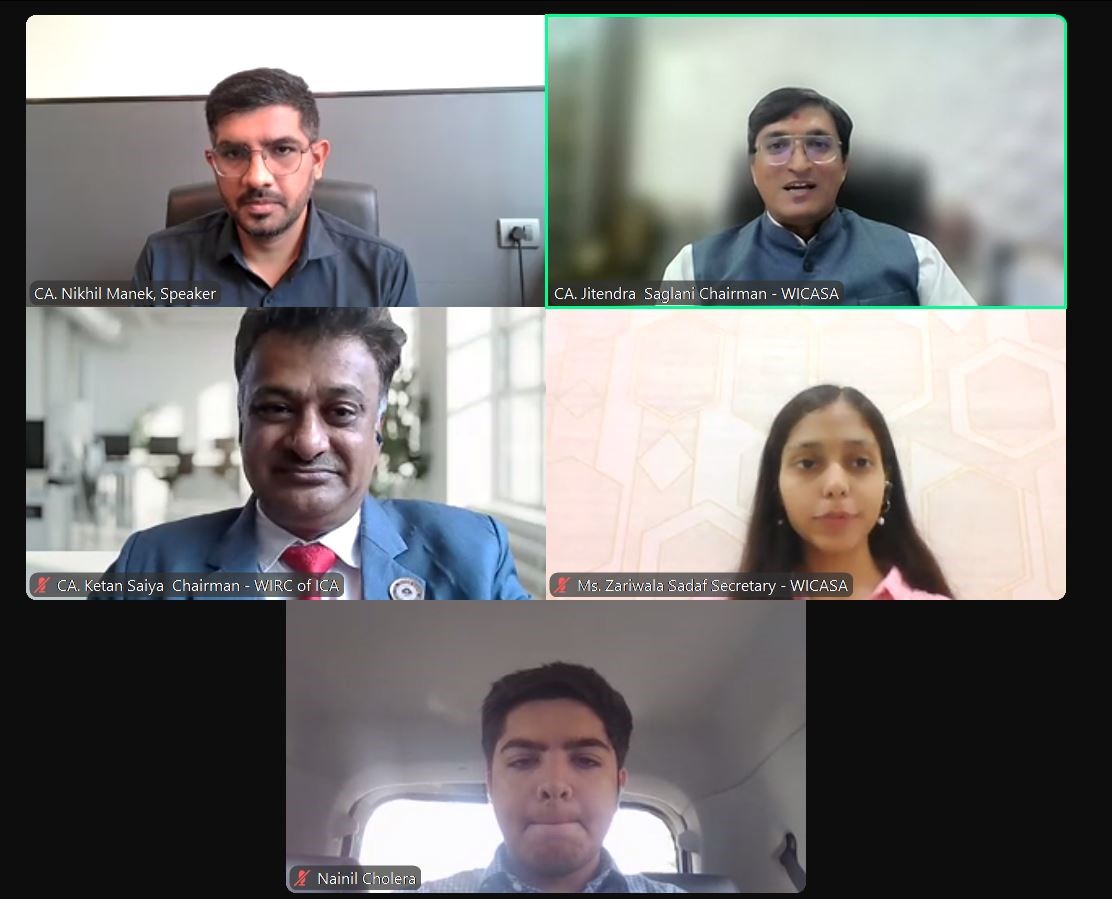 Left to Right: Ms. Jahanvi Mehta, Speaker, CA. Jitendra Saglani, Chairman, WICASA, CA. Ketan Saiya, Chairman, WIRC, CA. ( Dr.) Fenil Shah, Treasurer, WIRC