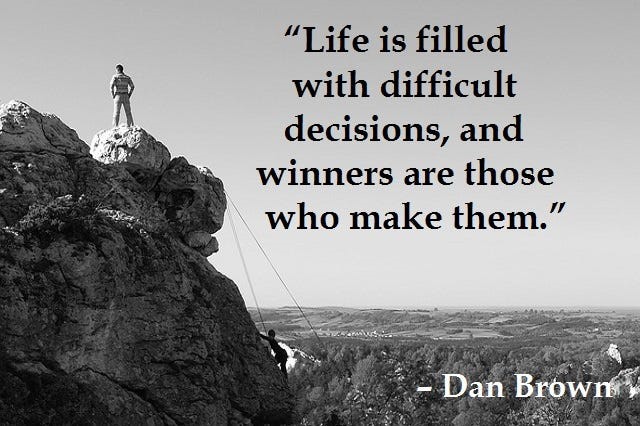 “Life is filled with difficult decisions, and winners are those who make them.”
